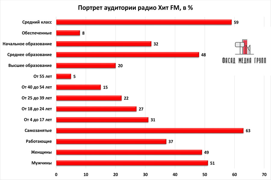 На вопрос: «Какова целевая аудитория радио «Хит ФМ»? - можно указать следующее: